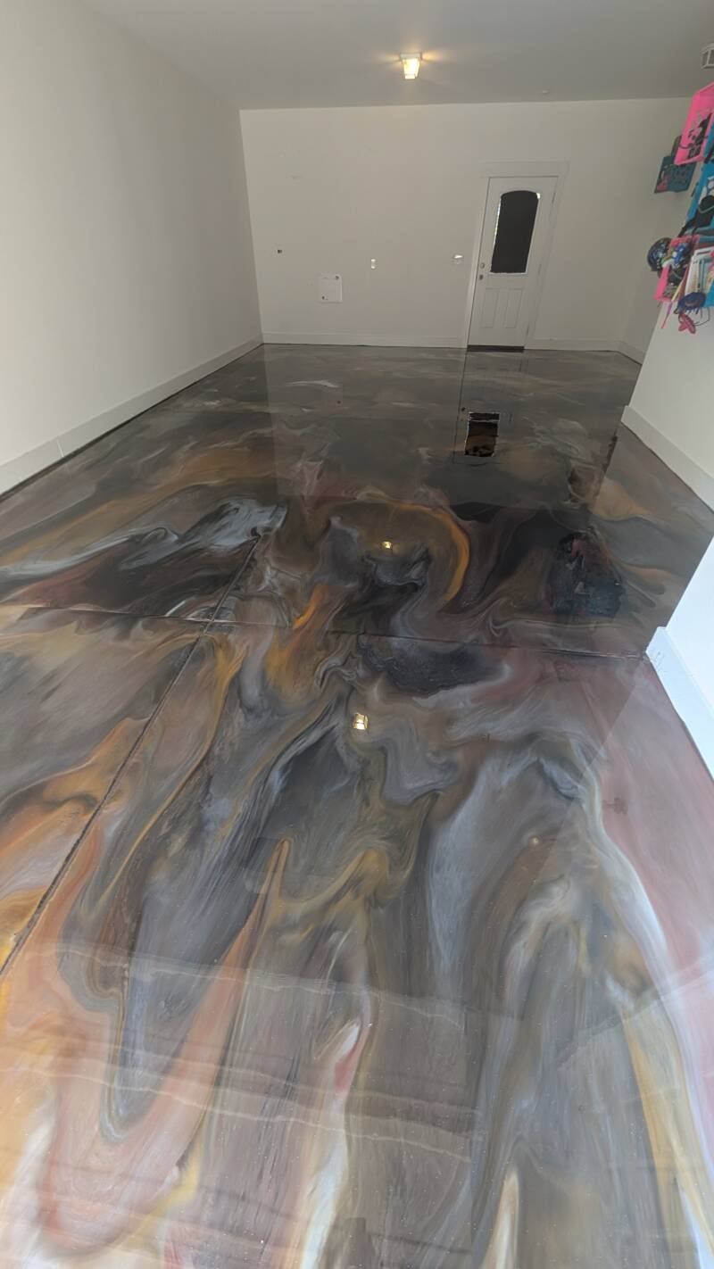 Create a stunning, one-of-a-kind look with our metallic epoxy flooring options.